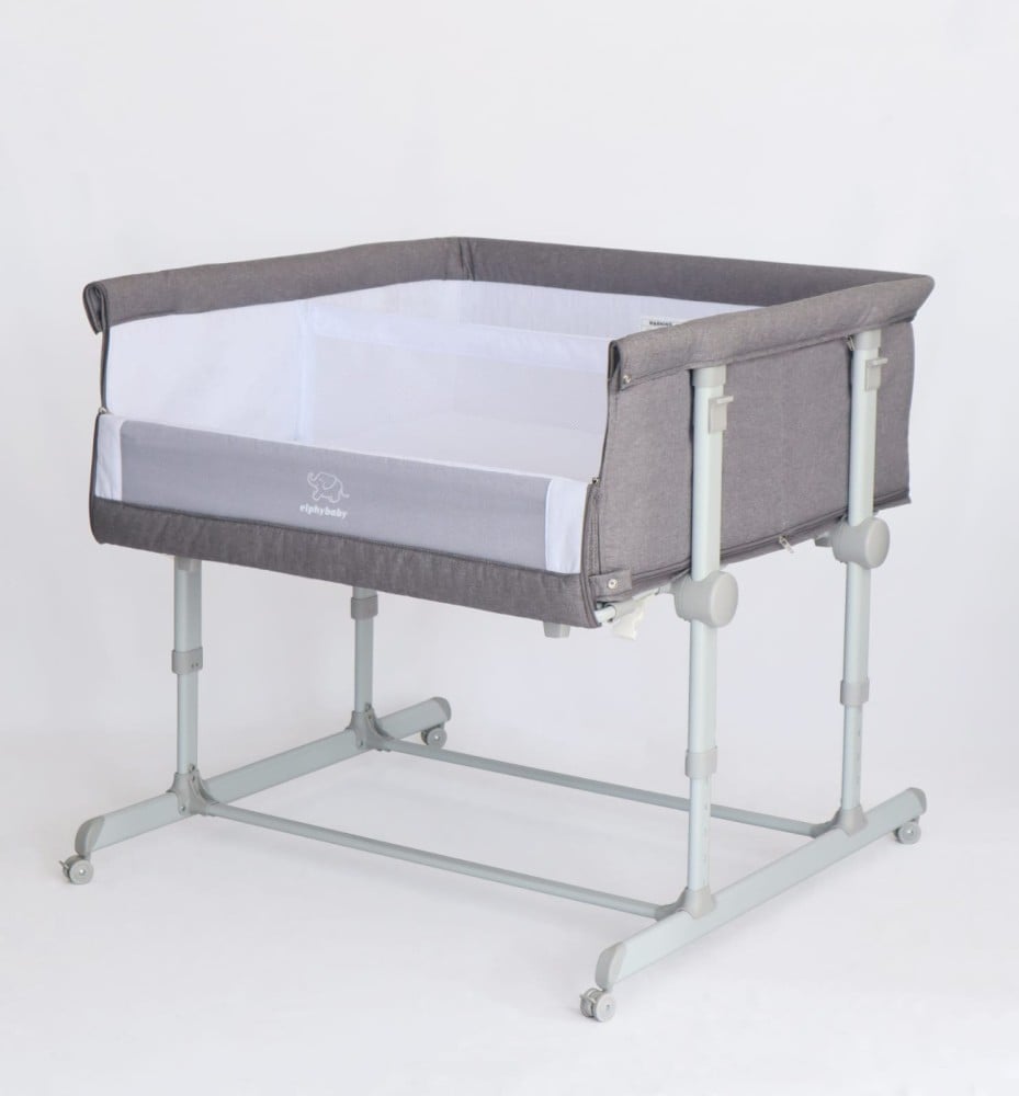 Bedside Sleeping Crib Travel Cot, Co-Sleeping Bed, Foldable Side Wall, 5-Level Height Adjustment and Silent Universal Wheel, for Baby Twins, Gray